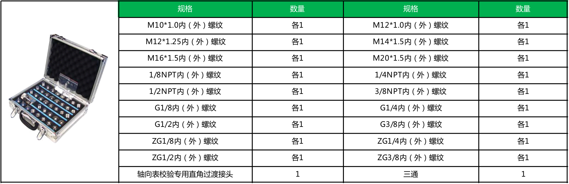 ETYL129压力转换接头组是针对压力仪表检测时不同制式、不同规格螺纹之间的转换连接而设计,将M20*1.5外螺纹转成其他规格的螺纹,具体规格、数量如下表。